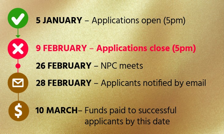 The Net Proceeds Committee meets in the second half of each month (except December) to consider the month's applications – you should expect to hear from us by the first week of the following month.